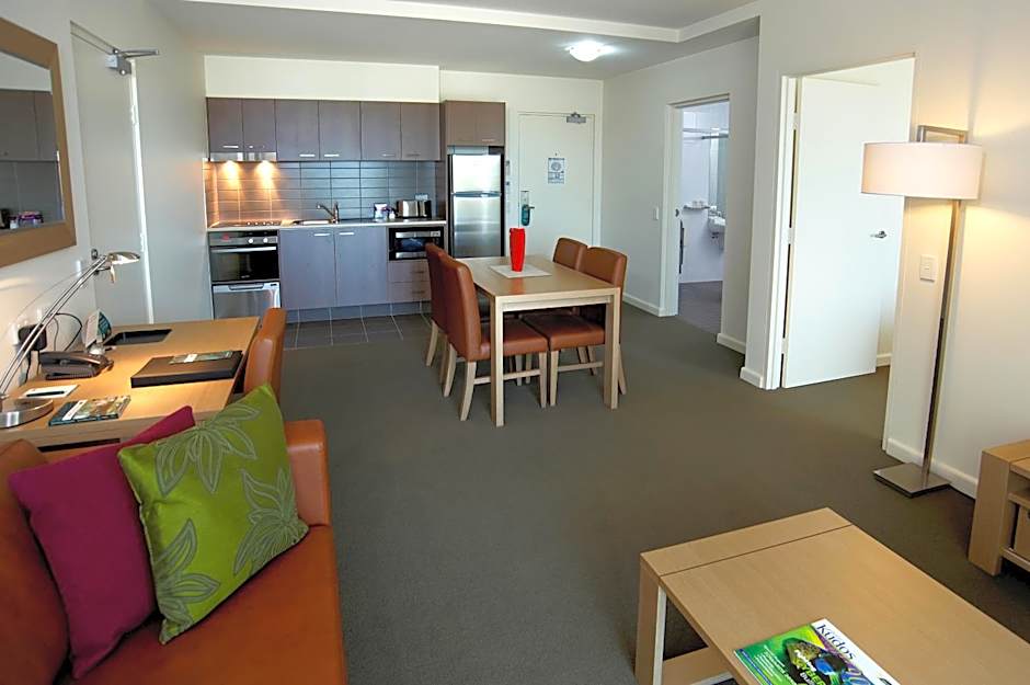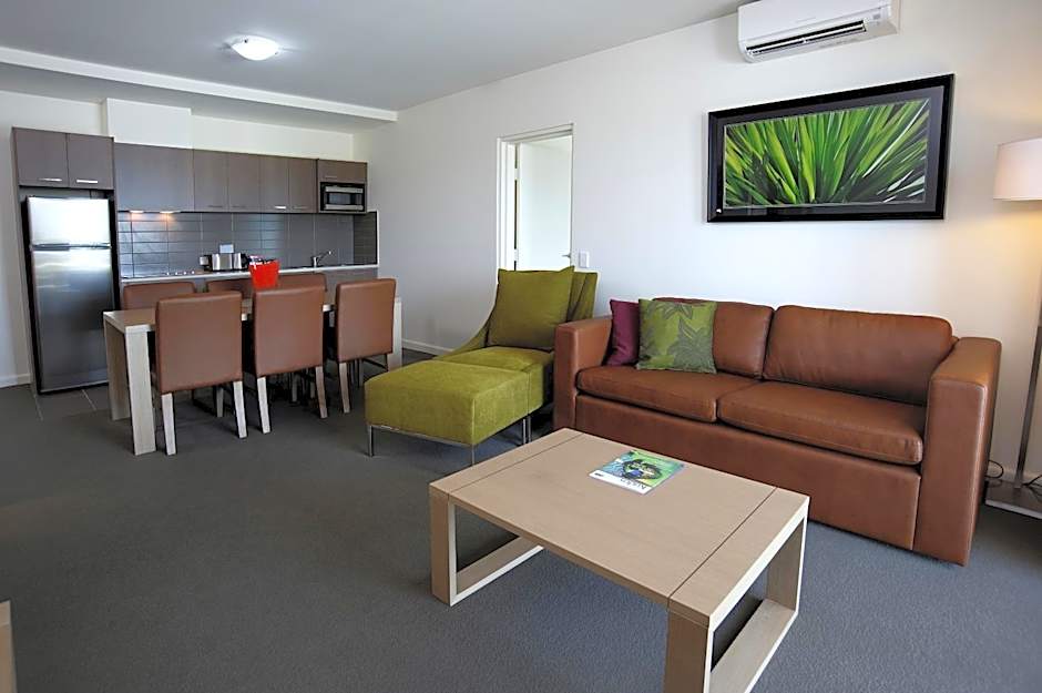This fully accessible apartment features stylish and spacious interiors. Each has a full kitchen, separate living and dining areas, laundry facilities and a private balcony.